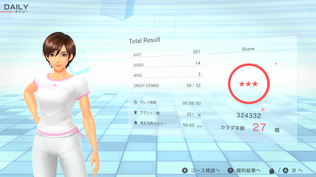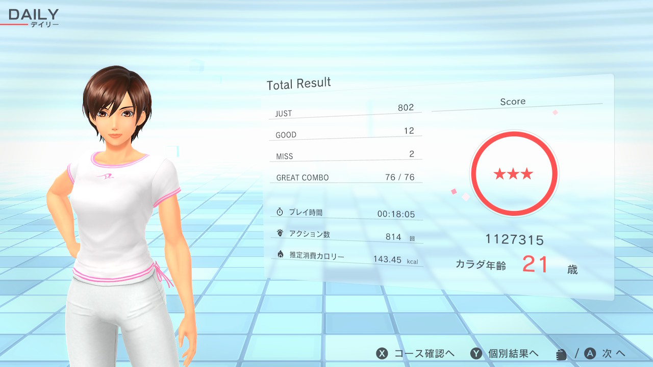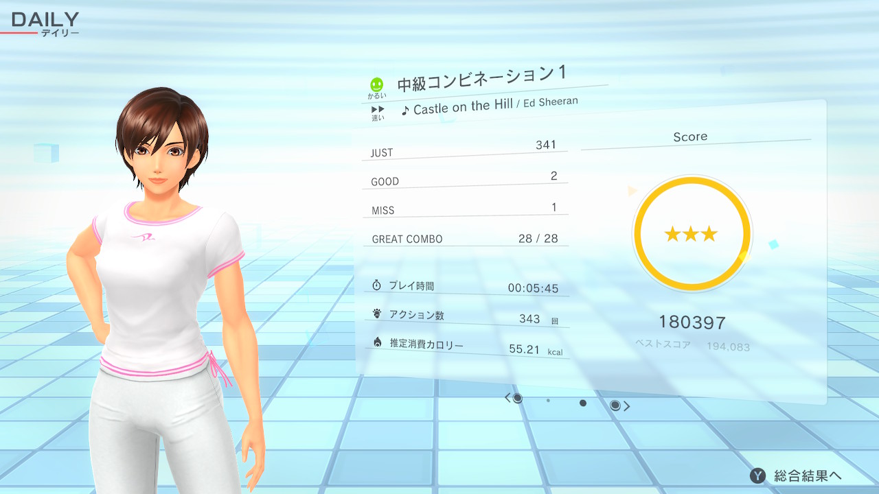 フィットボクシング2、55日目~! ヒップシェイプ、鬼門。 ステップは楽しいんだけどな~(ただしステップの判定はサポート入れてる) 続きを読む 畳む 2024.1.6(Sat) 20:42:29 運動 edit
