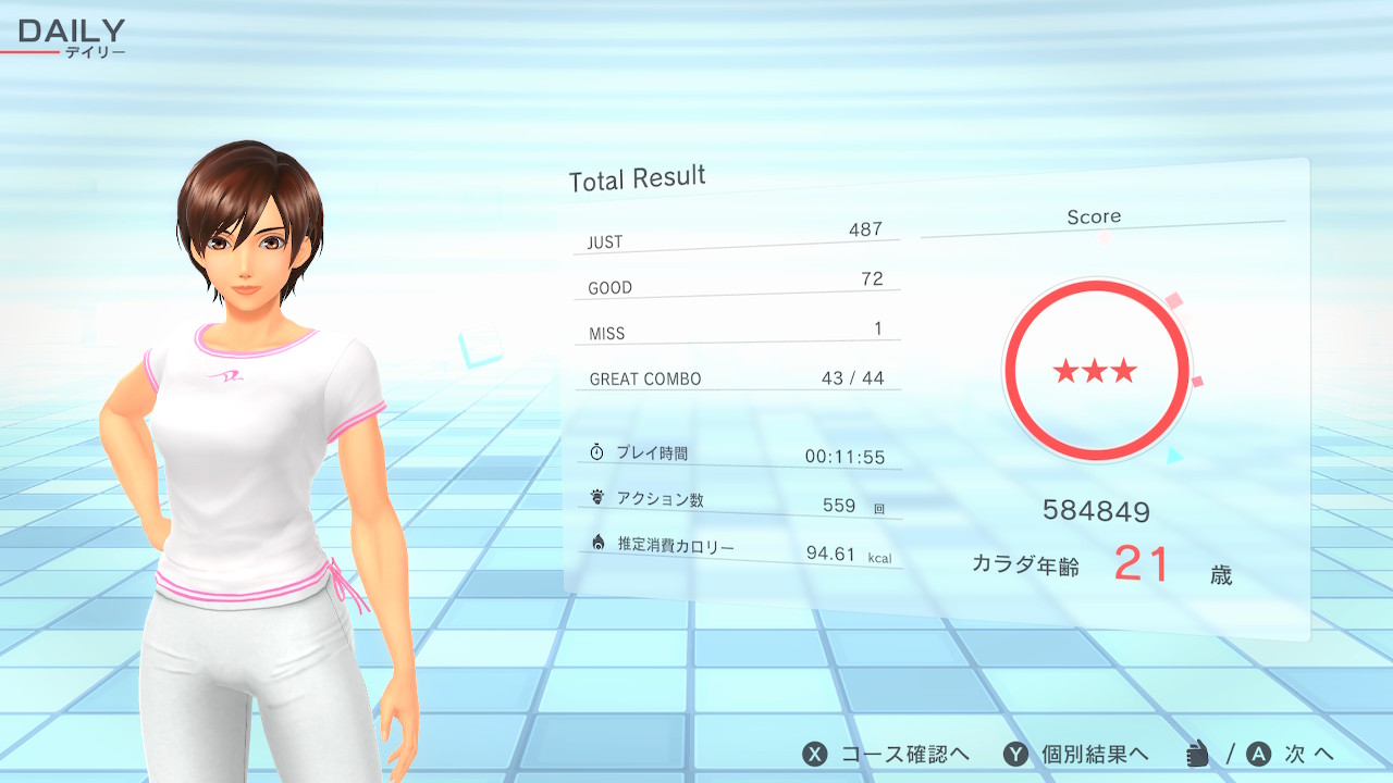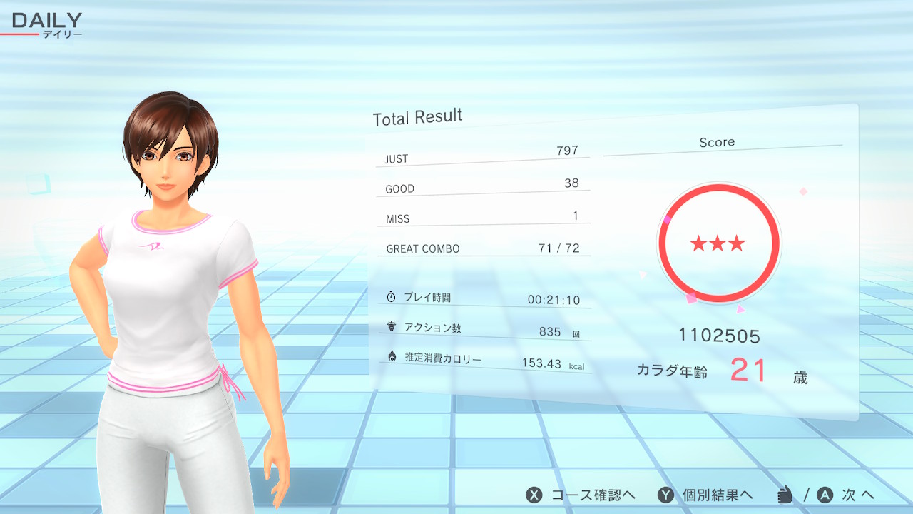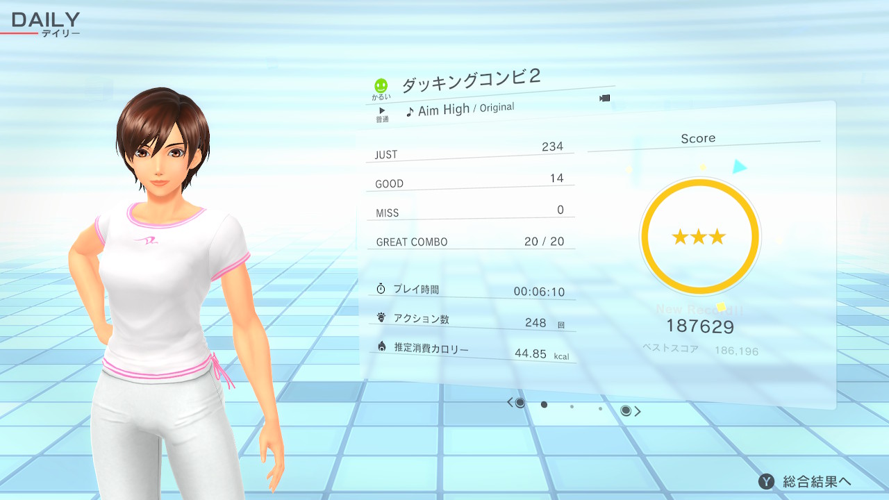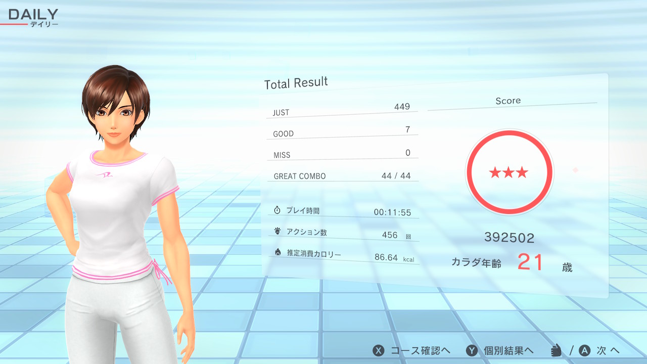フィットボクシング2、55日目~! ヒップシェイプ、鬼門。 ステップは楽しいんだけどな~(ただしステップの判定はサポート入れてる) 続きを読む 畳む 2024.1.6(Sat) 20:42:29 運動 edit