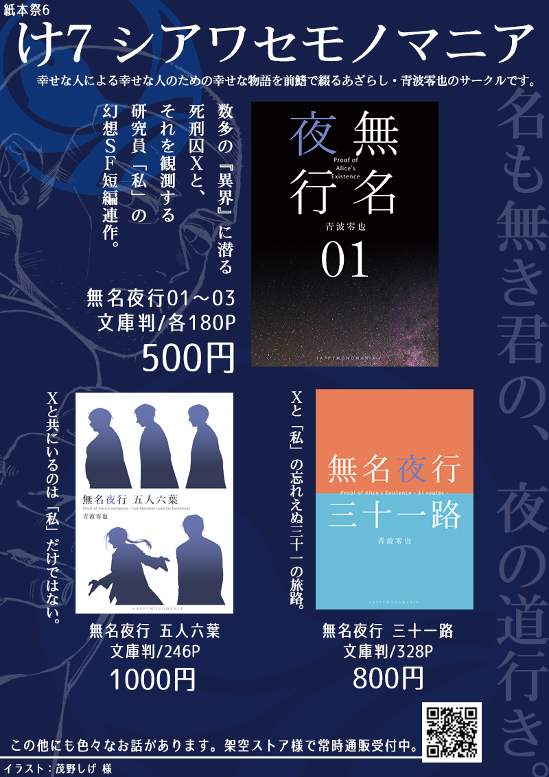 『無名夜行 01』と『無名夜行 五人六葉』を委託しておりますので、よかったら是非ご覧になってください~!