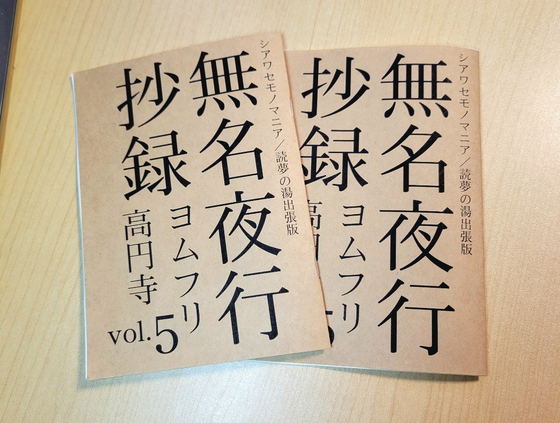 また、無料配布本として『無名夜行抄録』ヨムフリ高円寺vol.5版を配布します。