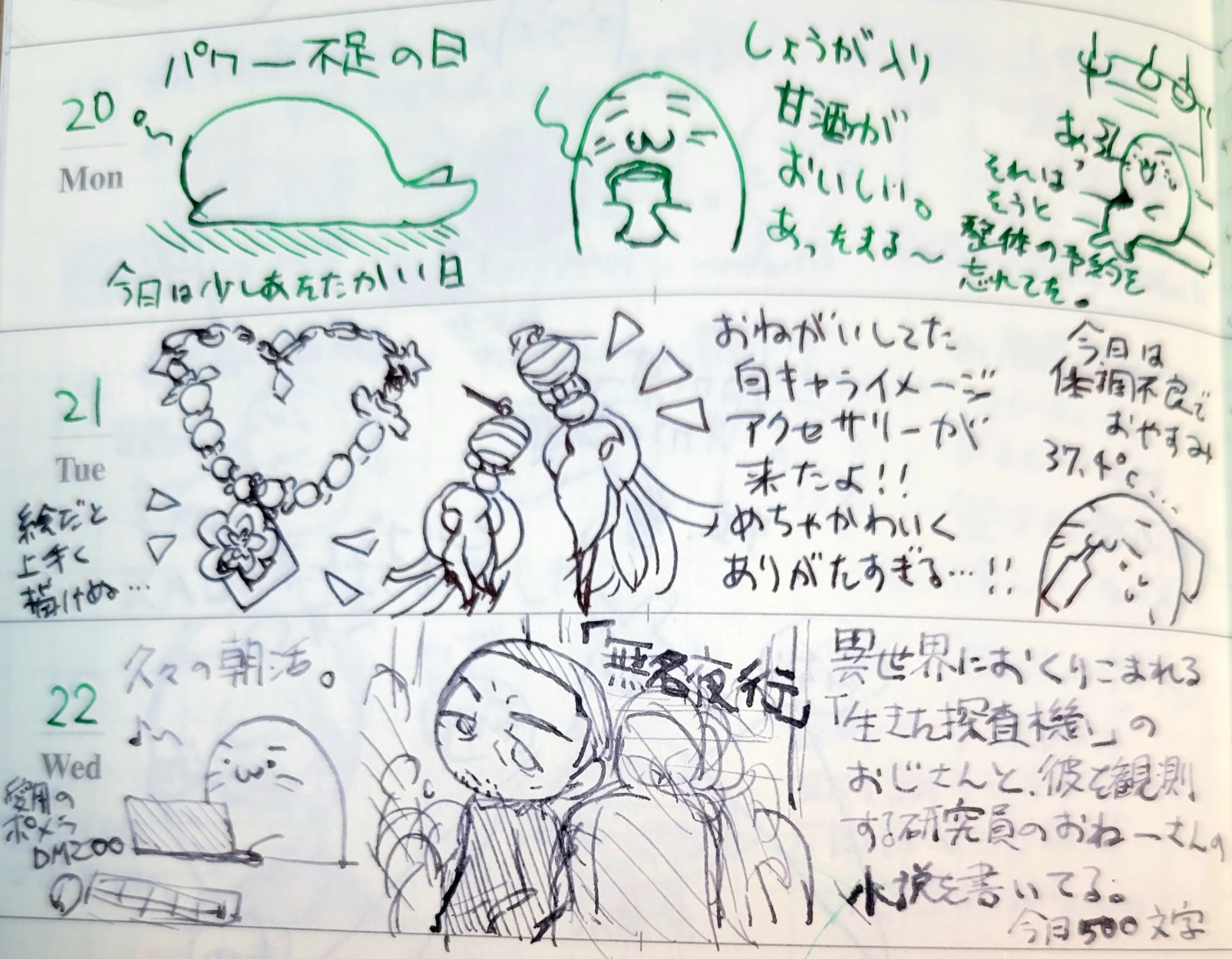 ひとまず仕事場では思いついたらスマホかノートに書くことにして、今は雌伏の時よ……。