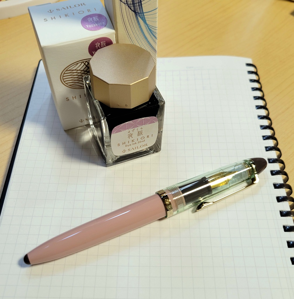 銀座のアンコーラさんで色を選んで作る万年筆、それと一緒に夜桜のインク。