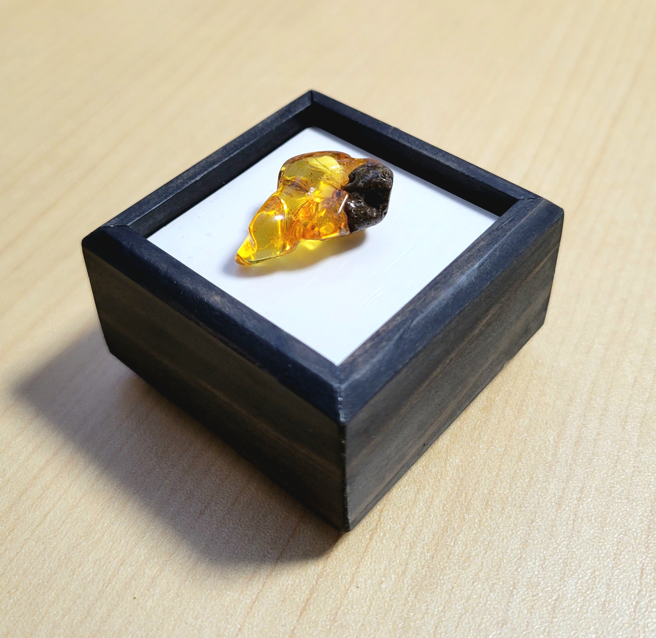 実際のところ琥珀はものによって全然形も色も混ざりものも異なるので、山になってる中からチョイスしてきたのだけれども、これが特に色合いと形のいびつさと混ざりもののバランスがお気に入りだった。