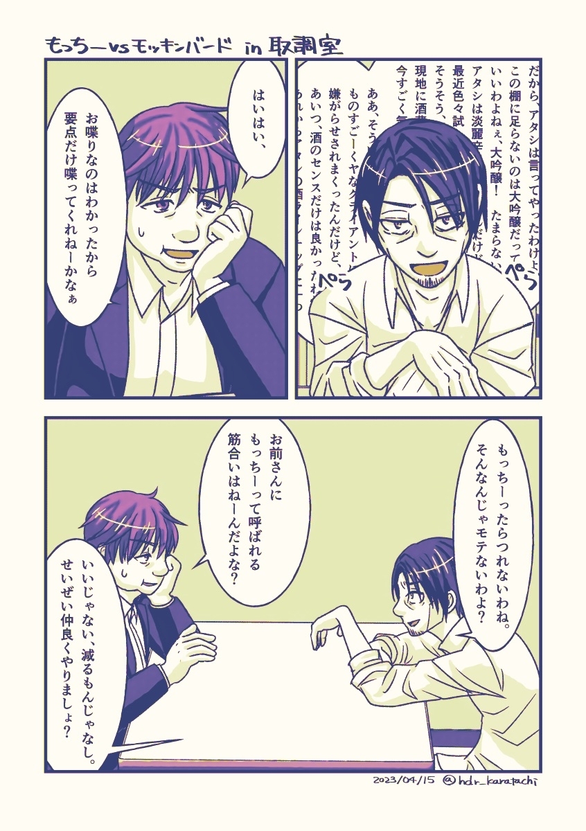 らくがき、CoC版望月翔平とモッキンバードin取調室(与太話) (モッキンバードの素顔があるので一応かいマホ現行組は後ほど……) 続きを読む そもそももっちーとモキバは同一時空上にはいないんですが(VOIDが特殊ステージだから……)。 それはそれとして刑事もっちーと犯罪者モキバのぐだぐだ取り調べは見たいよね、という話。 ちなみにもっちーがやや若めに見えるけど年齢的にはモキバの方が下です。実は。 畳む #あざらしおえかき 2023.4.15(Sat) 16:10:28 らくがき,遊び edit
