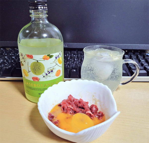 今回のテレッテレーのおやつは馬刺しというか馬肉ユッケであった!!