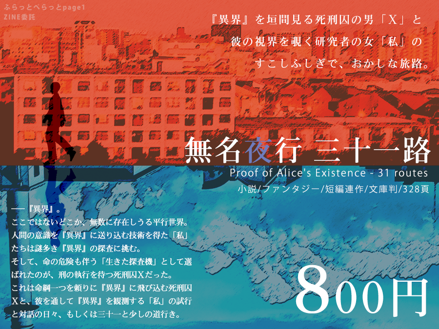 畳む無名夜行は視点が「私」視点かつXの視点も兼ねるということもあり、キャラクターの絵を出さないというコンセプトの話なので、今回も絵は使わずに写真加工のみ。