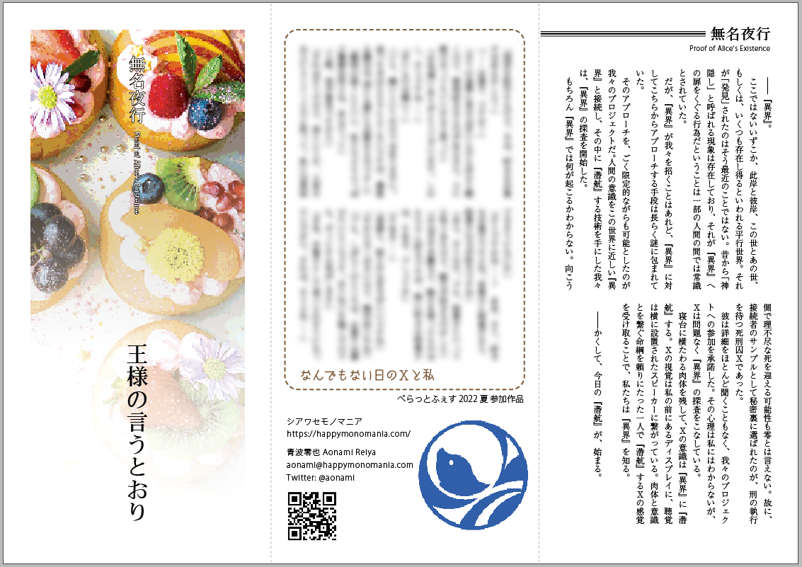 文字もかわいくすればよかったかな~と思いつつ、でも無名夜行だしな……ということで、いつも通りの感じに。