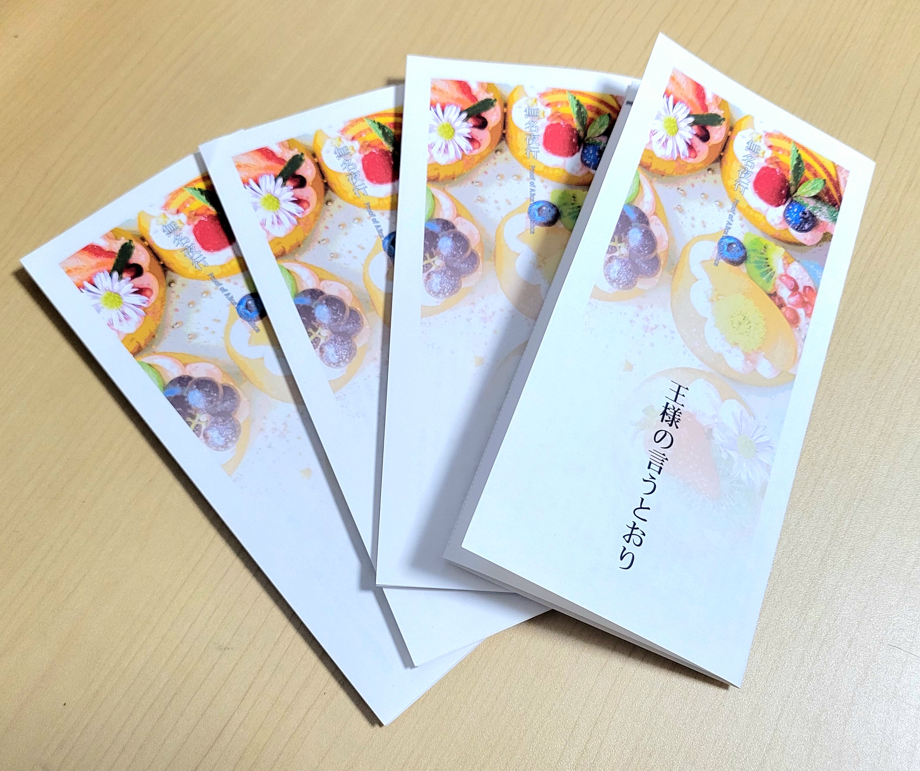 ただ、かなりプリントに時間かかるのもわかったから(インクジェットだもんな……)、イベントに出すときは、早めに作った上で印刷所に託しても良さそう。