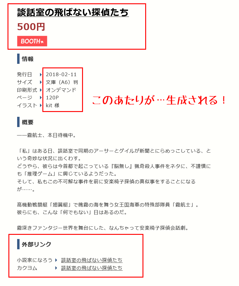 でも小説紹介ページ組み立てられればあとはそれをリンク繋げるだけなので~。