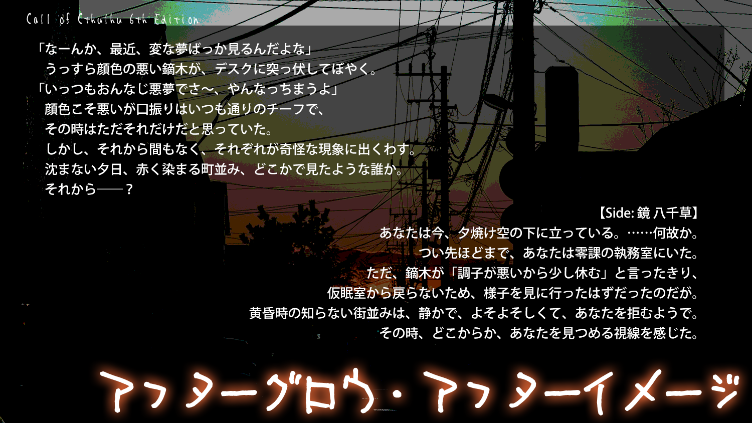 CoC6版『庭師は何を口遊む』自陣向けに書いたシナリオ、HO4の鏡 八千草さん向け。